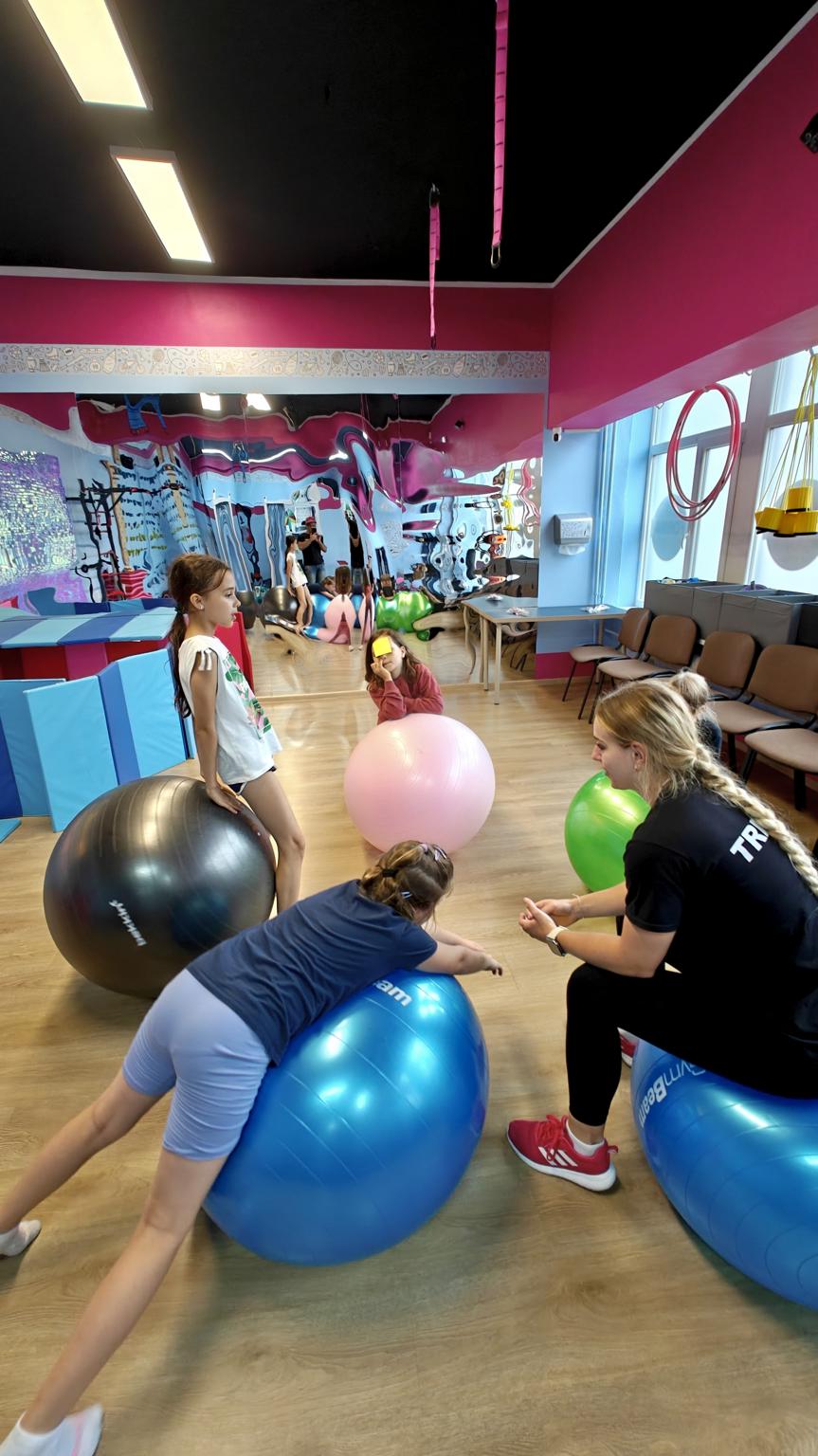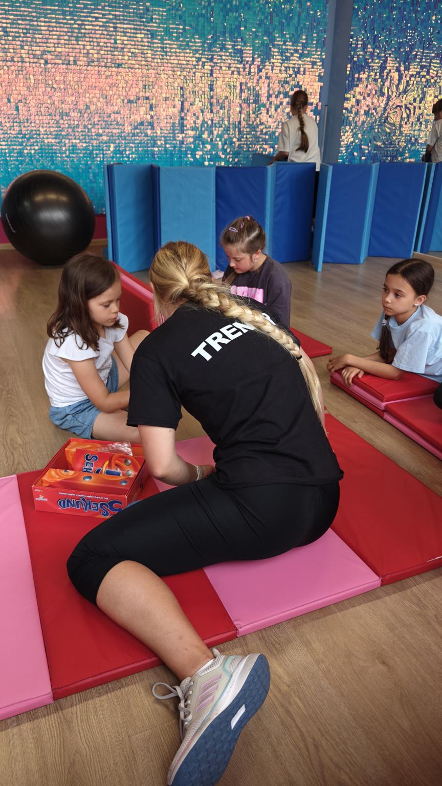 W sali treningowej czekały na dzieci zabawy integracyjne, które rozwijają kreatywność, współpracę i wyobraźnię. Dzieci wspólnie tworzyły historie, rozwiązywały zadania logiczne, a przede wszystkim – świetnie się bawiły.