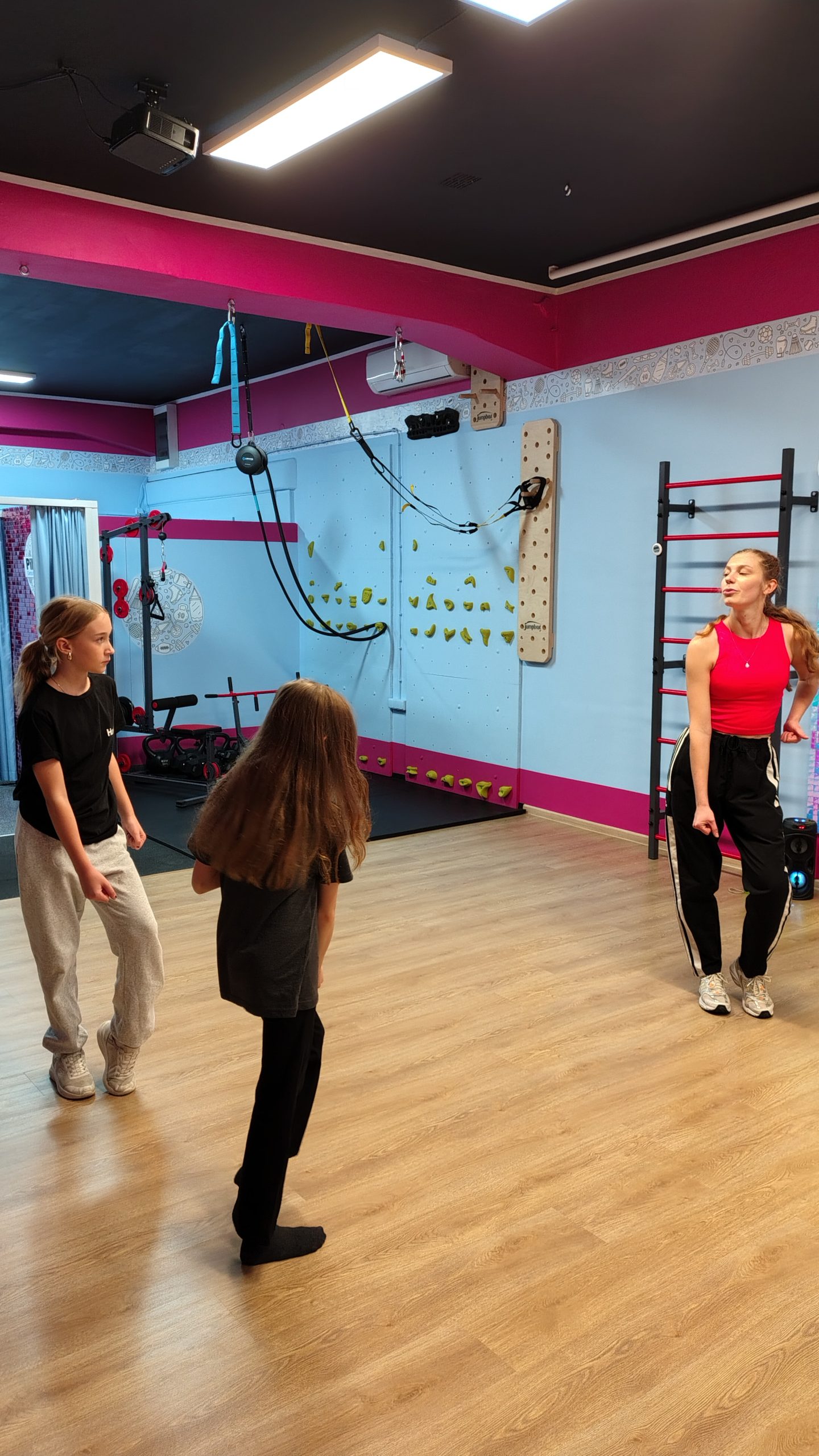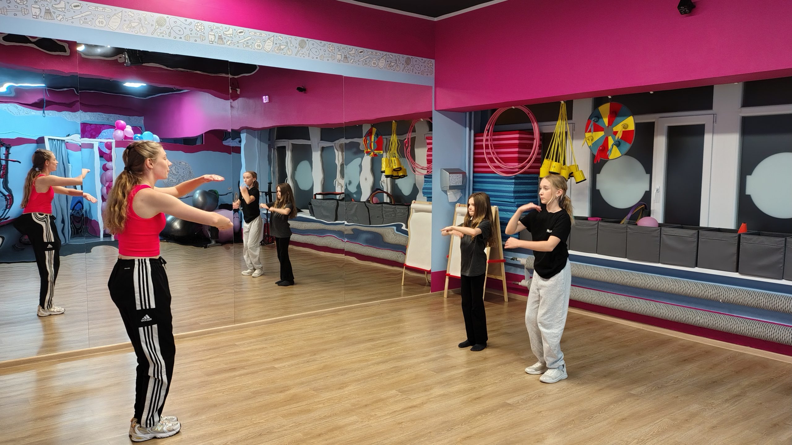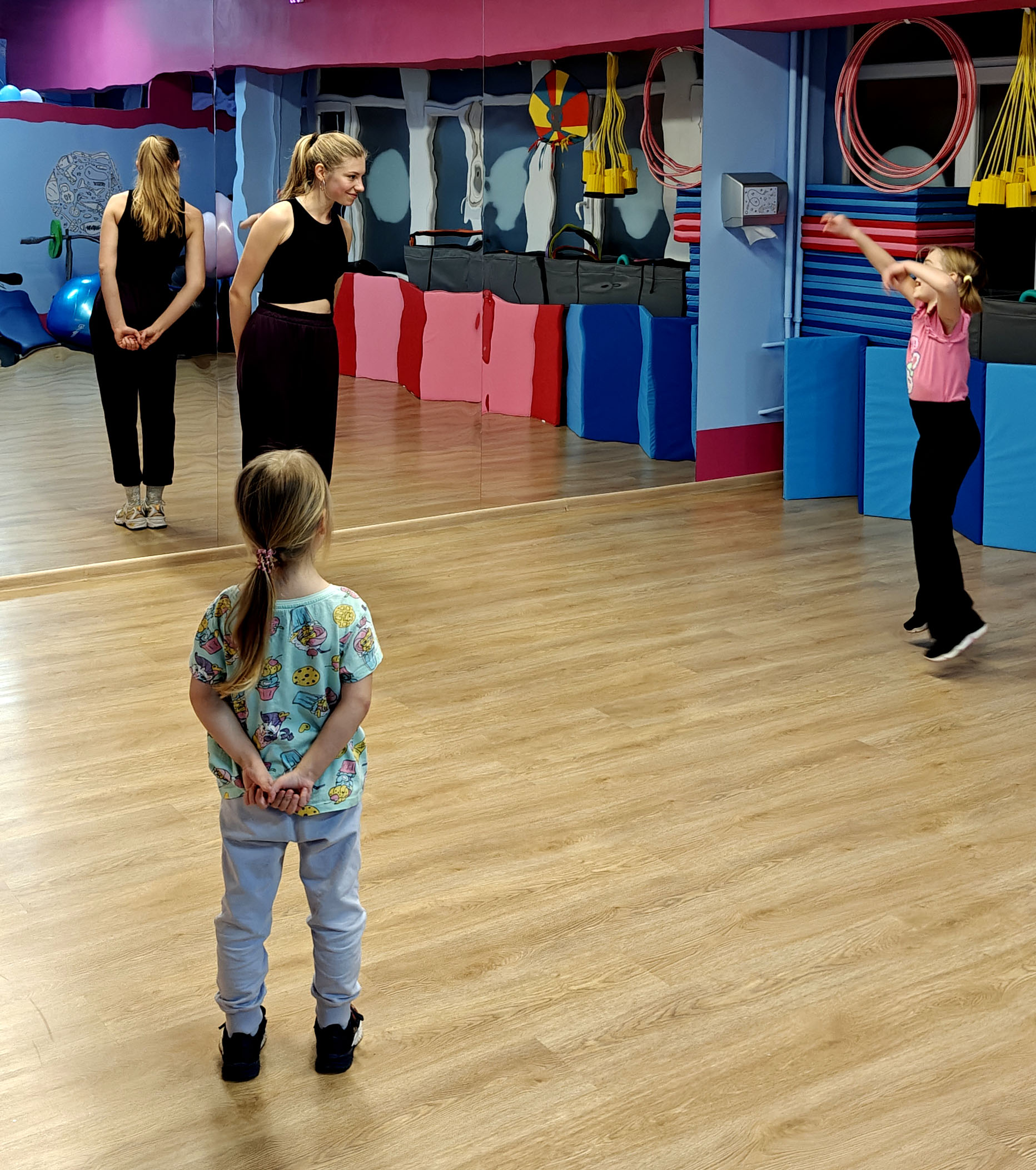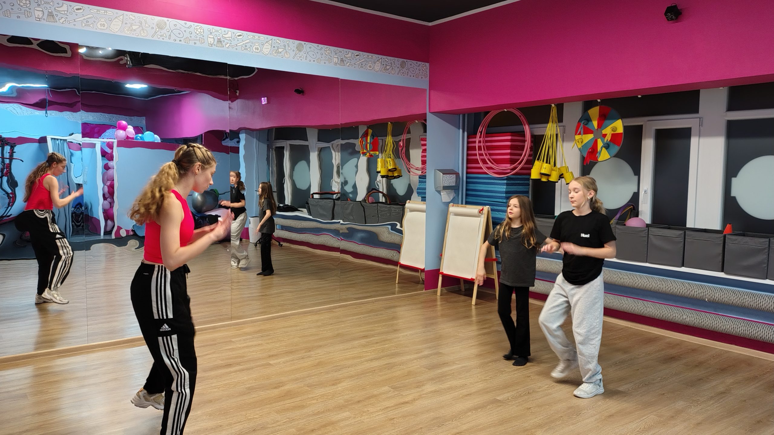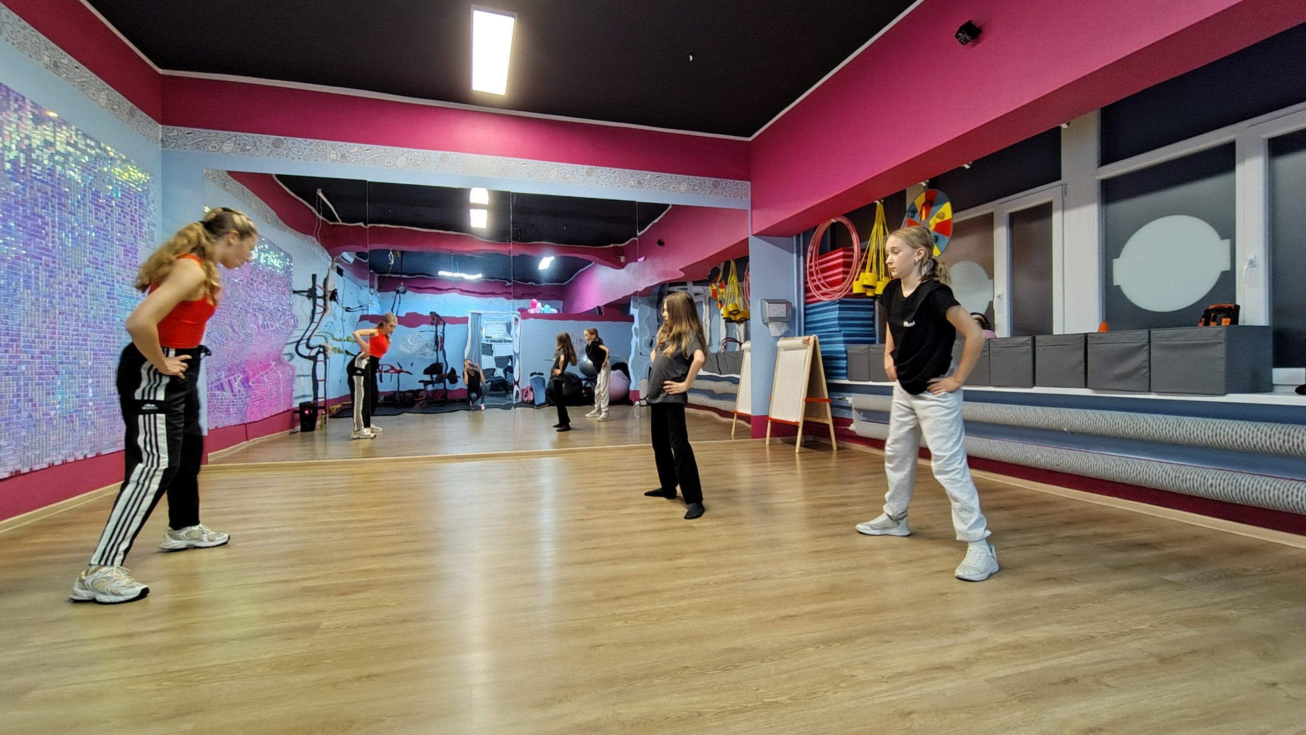 Nasza sala w PikiTiki to miejsce, które łączy nowoczesność, komfort i troskę o bezpieczeństwo uczestników. Przestronne i przyjazne wnętrza są zaprojektowane z myślą o dzieciach w różnym wieku oraz dorosłych, zapewniając doskonałe warunki do aktywności fizycznej. Sala wyposażona jest w najwyższej jakości sprzęt sportowy oraz sprzęt estradowy, który może być wykorzystywany podczas zajęć tanecznych oraz Influ-Dance: lasery, stroboskopy, kolorowe światła, wytwornicę dymu, gwarantuje to wyjątkowe doznania, niezależnie od rodzaju zajęć.